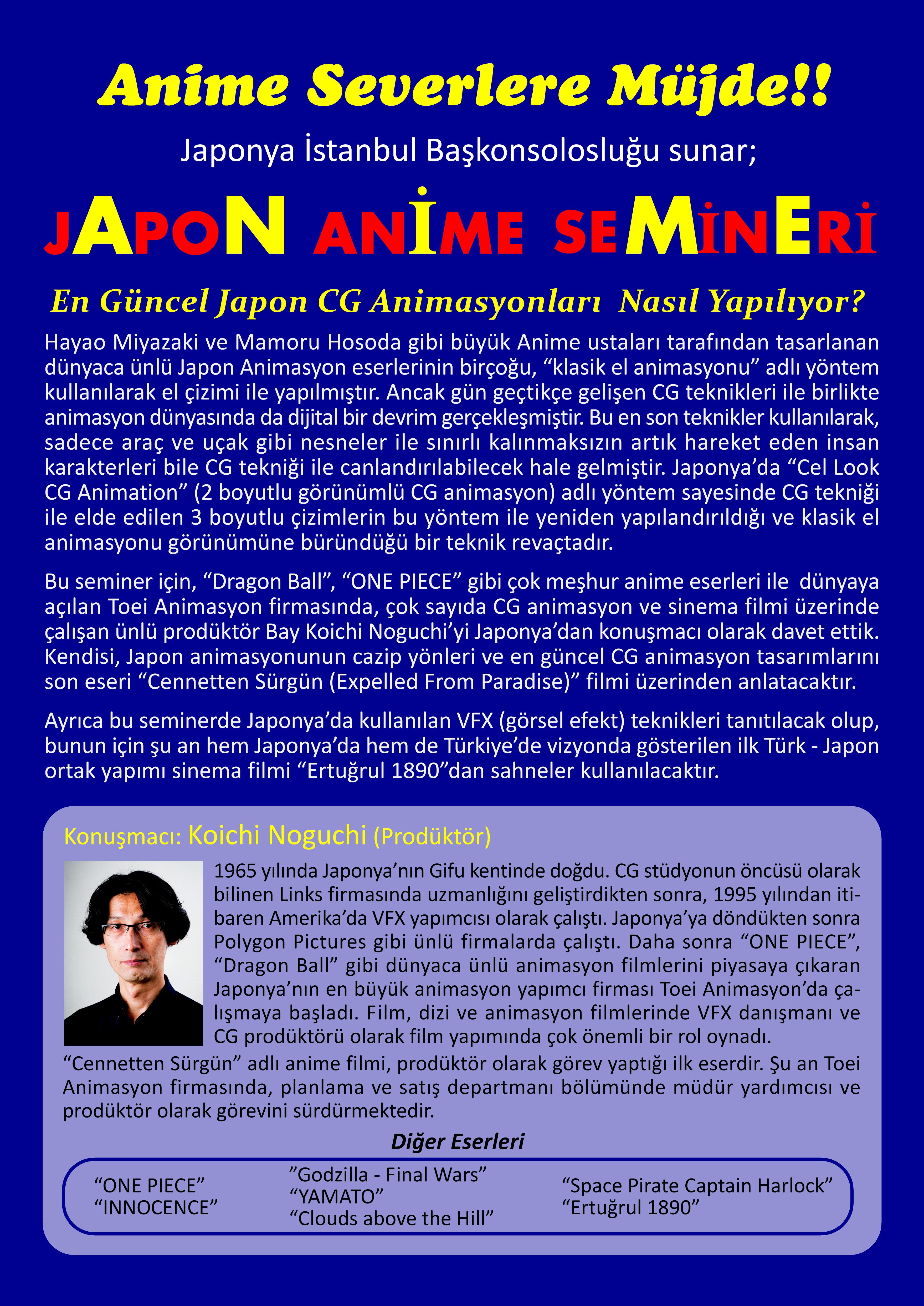 本セミナーでは、『ドラゴンボールZ』や『ワンピース』などで世界のアニメシーンを牽引する東映アニメーションで多数のCGアニメや実写映像制作を手がけるプロデューサー・野口光一氏を講師に迎え、日本アニメの魅力や最新CGアニメ制作工程などを、自身の最新作『楽園追放』を題材に解説していただきます。